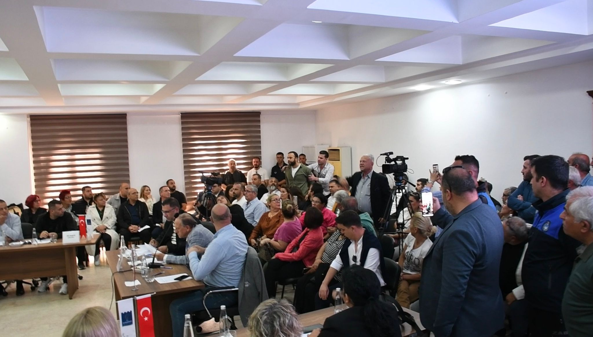 Diğer partililerin araya girmesiyle ortam bir süre yumuşasa da, bu kez dinleyici bölümünde bulunan bir İYİ Partili üyenin Başkan Ömer Günel’e hakaret içeren sözler söylemesiyle tansiyon yeniden yükseldi. Ardından başka bir İYİ Partili üyenin de CHP’li meclis üyeleri ve Başkan Günel’e yönelik bağırışları üzerine, zabıta ekipleri tarafından salondan çıkarıldılar. Çıkış sırasında yaşanan arbede kısa süreli gerginliğe neden oldu.