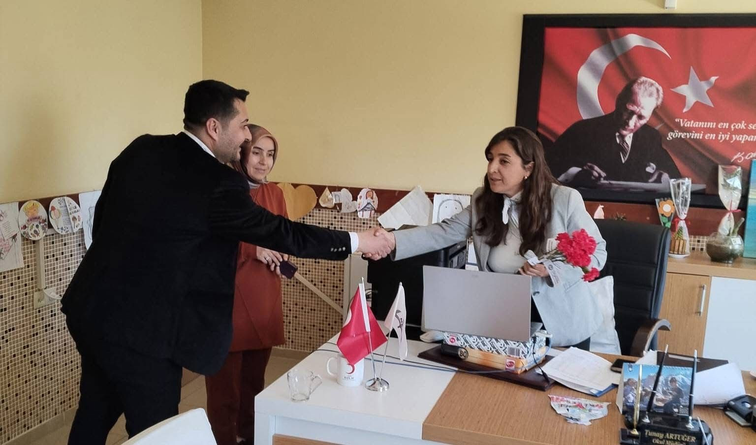 Kuyucak Belediye Başkanı Uğur Doğanca ve Belediye Başkan Yardımcısı Halil Sağlam’ın katılımıyla düzenlenen ziyaret programında, ilçedeki okullar ziyaret edilerek öğretmenlere karanfil dağıtıldı.