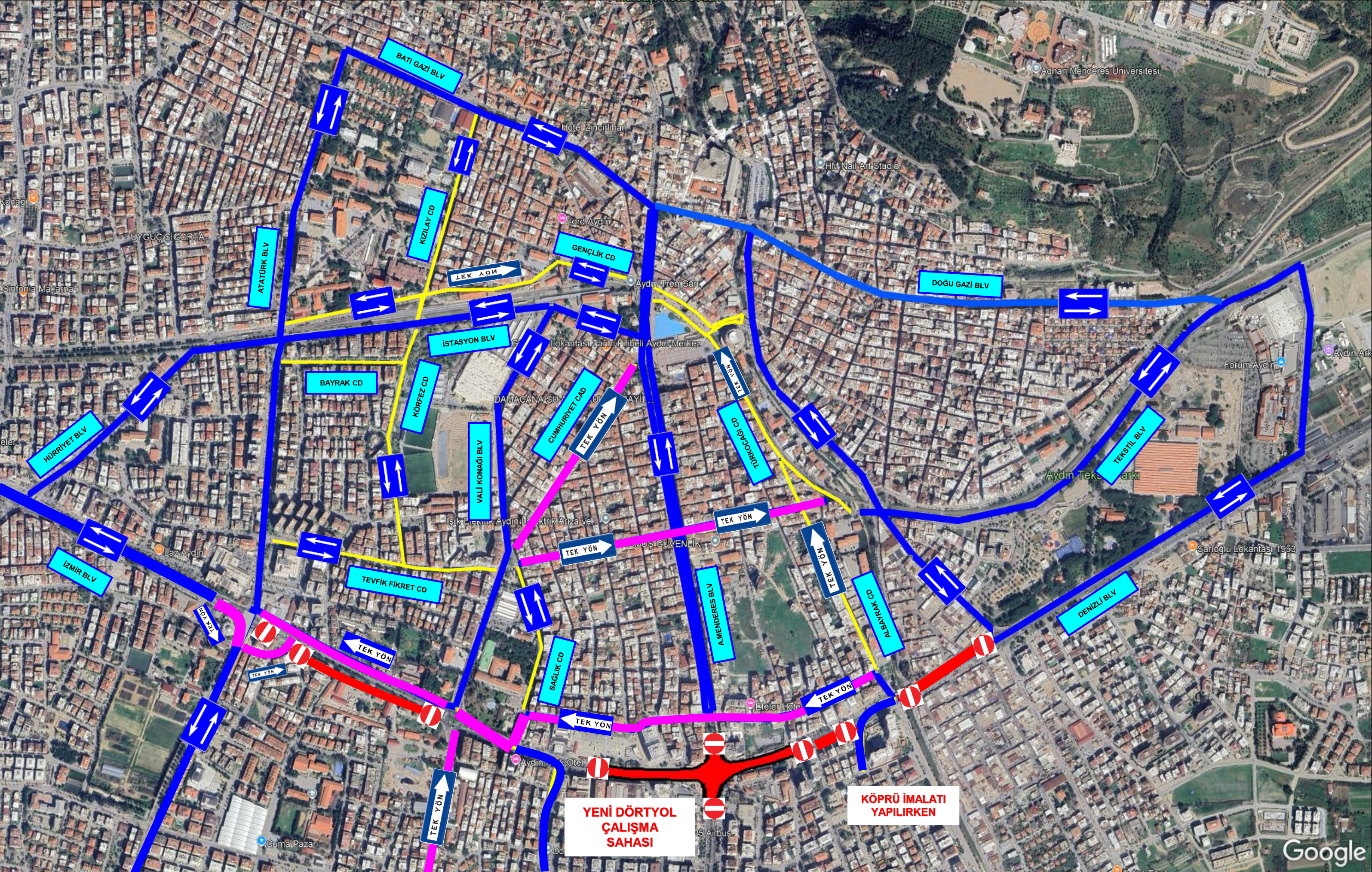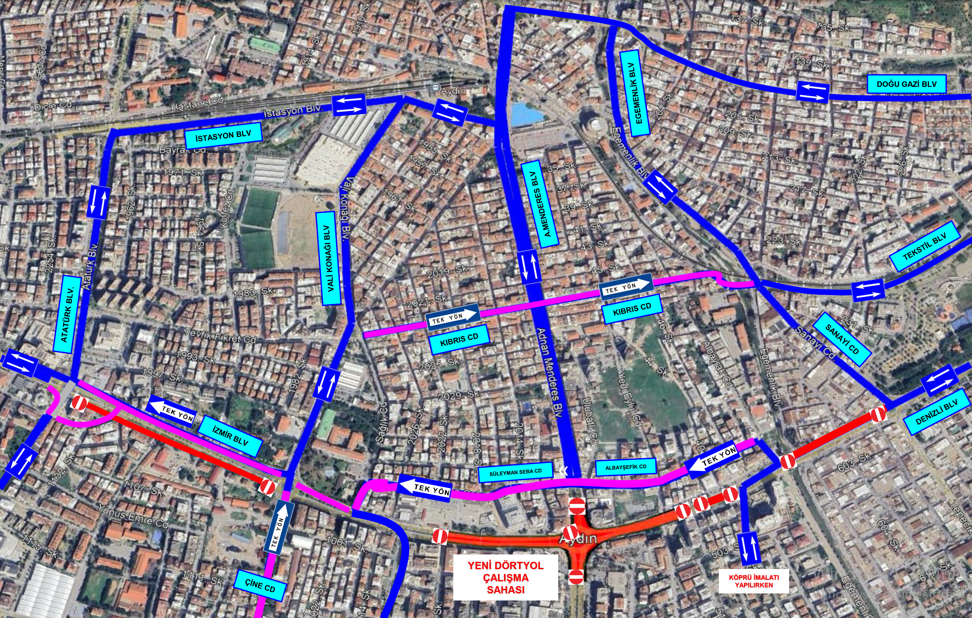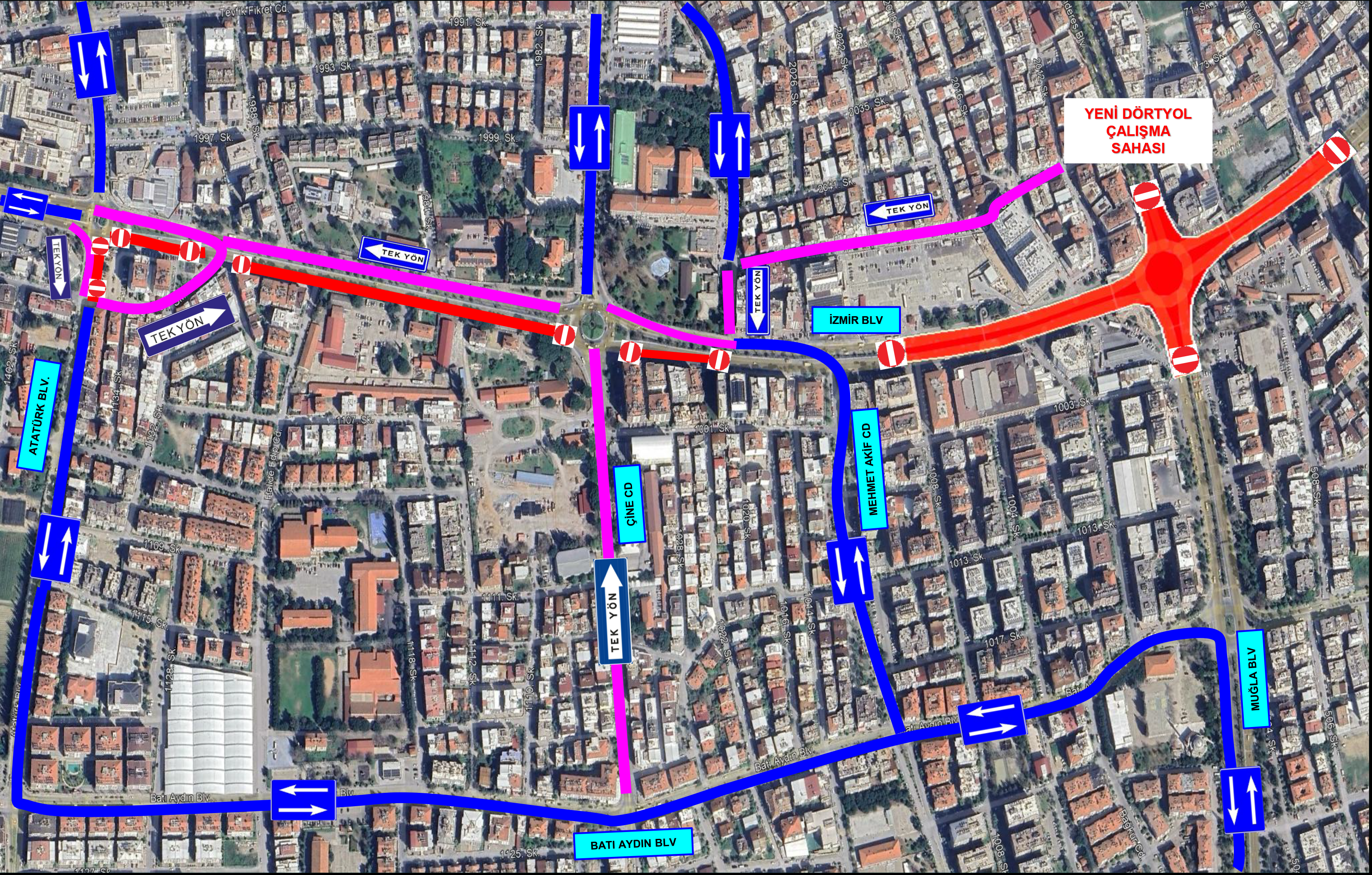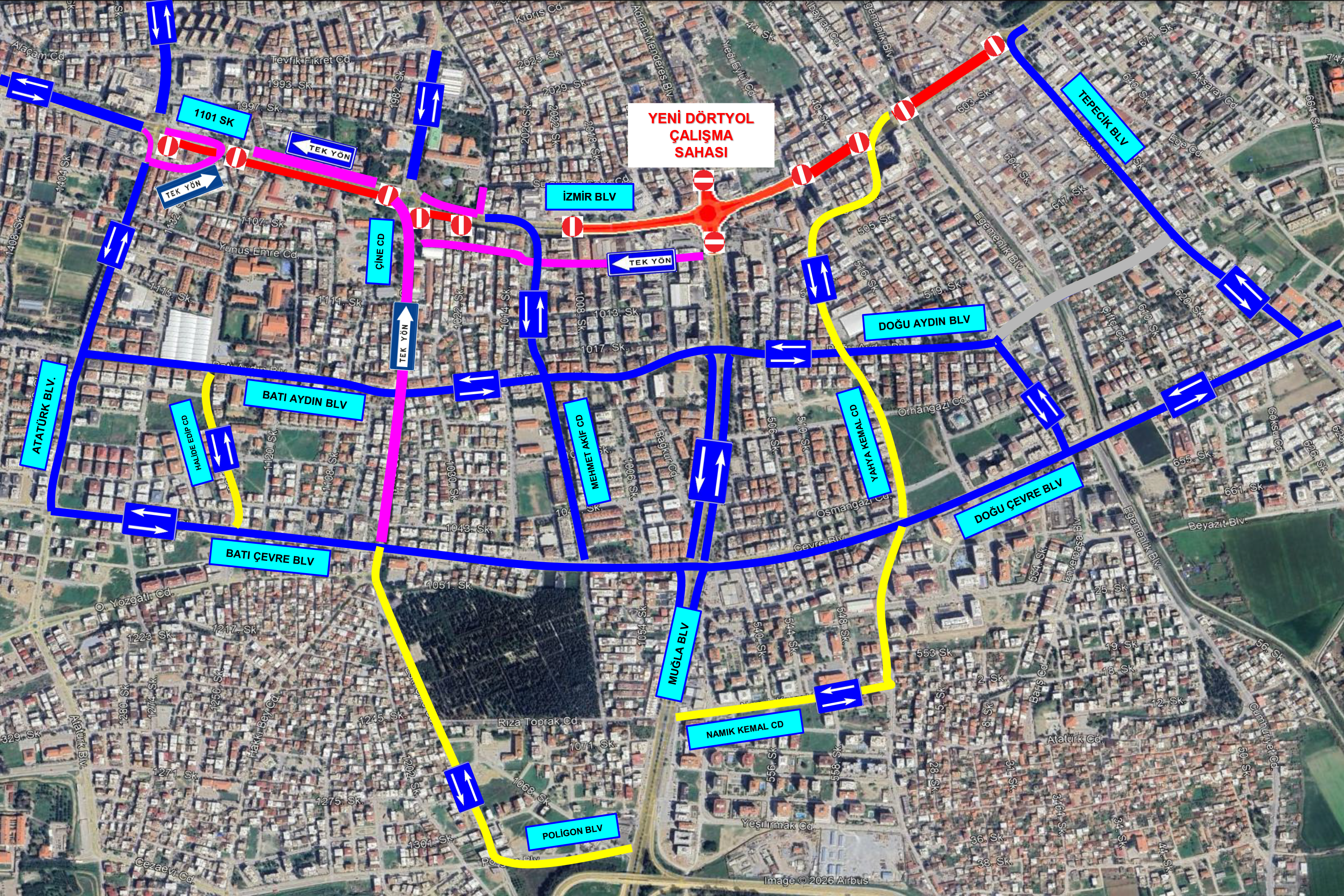 Yeni Dörtyol Kavşağı ile İmam Hatip Kavşağı arası kapalı olacağından Tepecik Bulvarı, Egemenlik Bulvarı, 522 Sokak, Mehmet Akif Caddesi, Çine Caddesi ve Atatürk Bulvarı güzergahlarını kullanabilecekler.