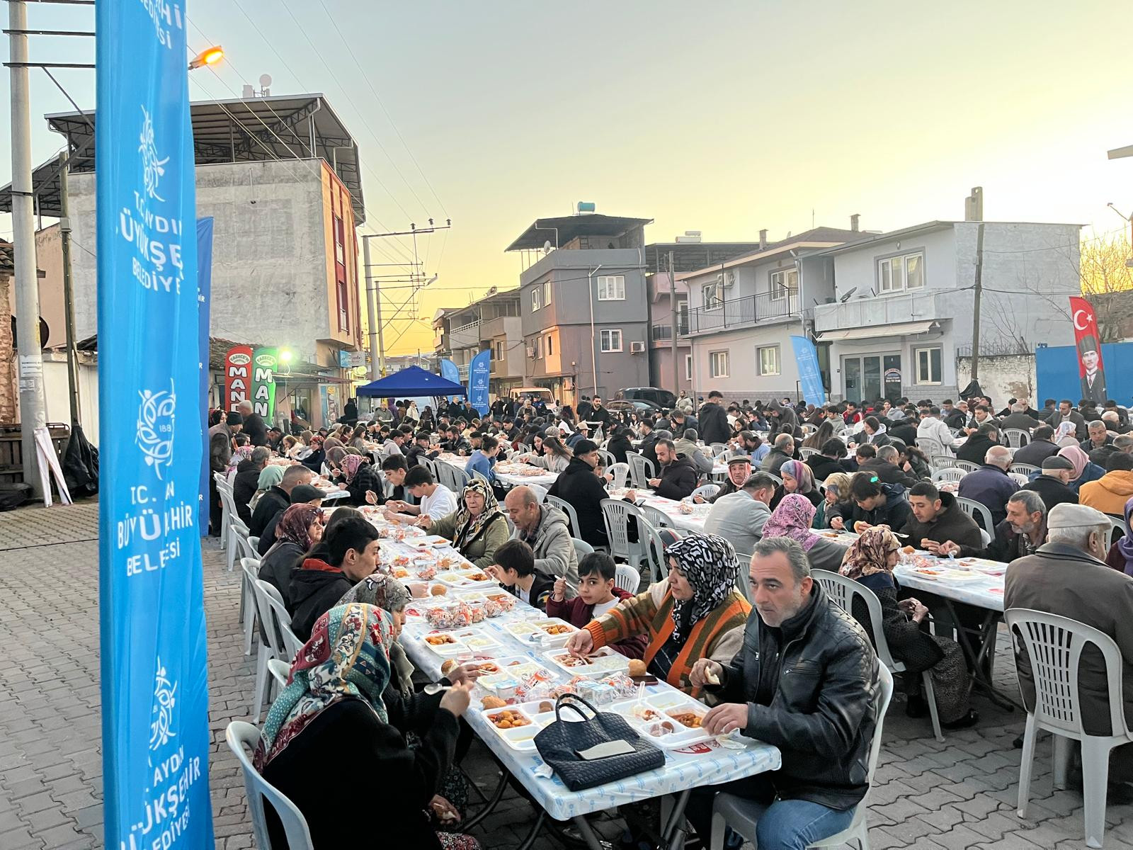 Ramazan ayının ilk gününde Büyükşehir Belediyesi tarafından 7 farklı noktada iftar programı düzenlendi. Efeler ilçesi Işıklı Mahallesi, Yenipazar ilçesi Belediye Meydanı, Çine ilçesi Mutaflar Mahallesi, Germencik ilçesi Çamköy Mahallesi, Buharkent ilçesi Savcıllı Mahallesi, İncirliova ilçesi Sandıklı Mahallesi ve Nazilli ilçesi Arslanlı Mahallesi’nde düzenlenen iftar programlarında binlerce vatandaş iftarlarını birlikte açtı. Her yaştan vatandaş, aynı sofranın etrafında buluşarak Ramazan’ın paylaşma, dayanışma ve bir arada olma kültürünü yaşadı.