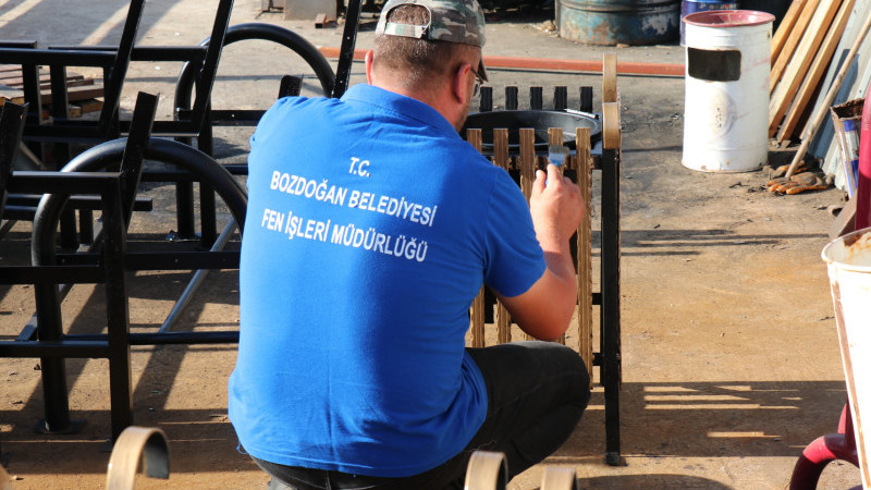 Bozdoğan Belediyesi, tasarruf ve kaynakların verimli kullanımı anlayışıyla çalışmalarını sürdürüyor. Belediye atölyelerinde kullanılamaz durumdaki banklar ve çöp kovaları onarılarak yeniden hizmete kazandırıldı. Böylece hem belediye bütçesi korundu hem de çevreye katkı sağlandı.