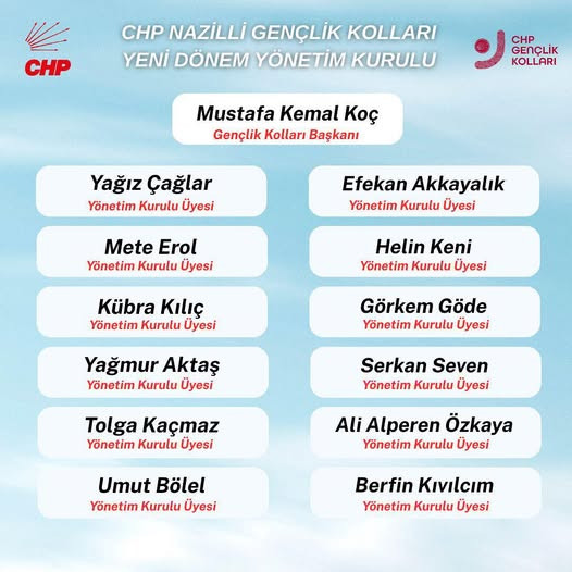 Cumhuriyet Halk Partisi Nazilli Gençlik Kolları Başkanlığımıza Mustafa Kemal Koç atanmıştır.