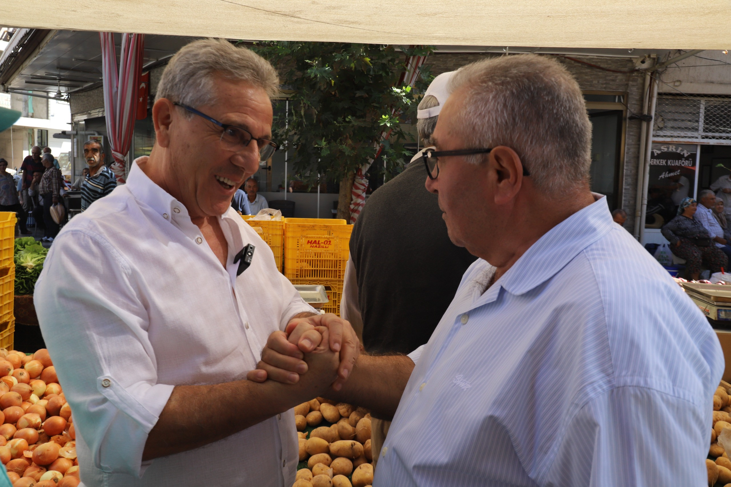 Nazilli Belediye Başkanı Dr. Ertuğrul Tetik, sabah mesaisine Aydoğdu Mahallesi’nde kurulan Salı Pazarı’nda pazarcı esnafını ziyaret ederek başladı