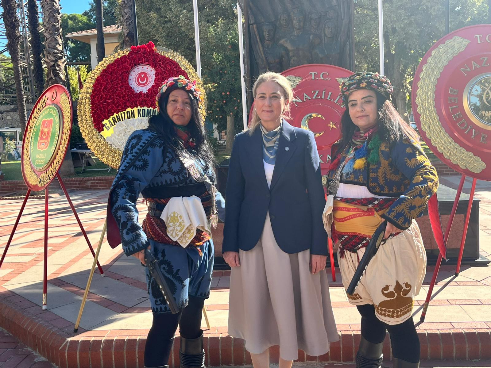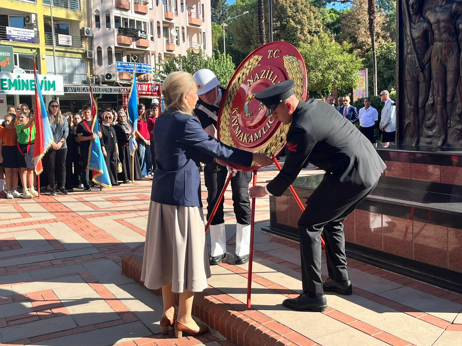 İstasyon Meydanında Atatürk Anıtının önünde düzenlenen törende, Nazilli Kaymakamlığı, Garnizon Komutanlığı, Belediye Başkanlığı ve Türkiye Muharip Gaziler Derneği Nazilli Şubesi’nin çelekleri Ata’ya sunuldu.