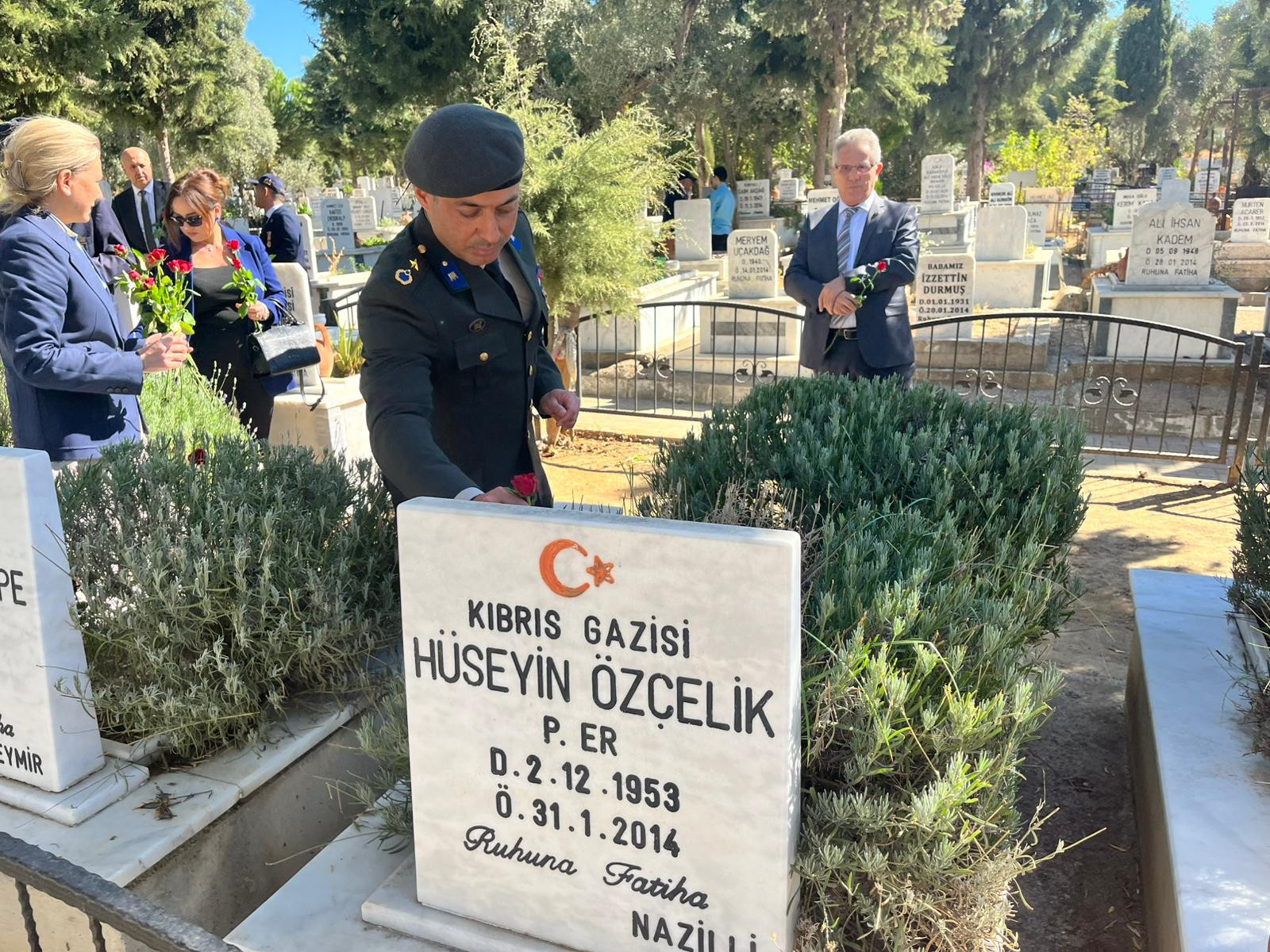 Eğriboyun Mezarlığındaki şehit ve gazi mezarları ziyaret edildi, dualar okundu ve çiçekler bırakıldı.