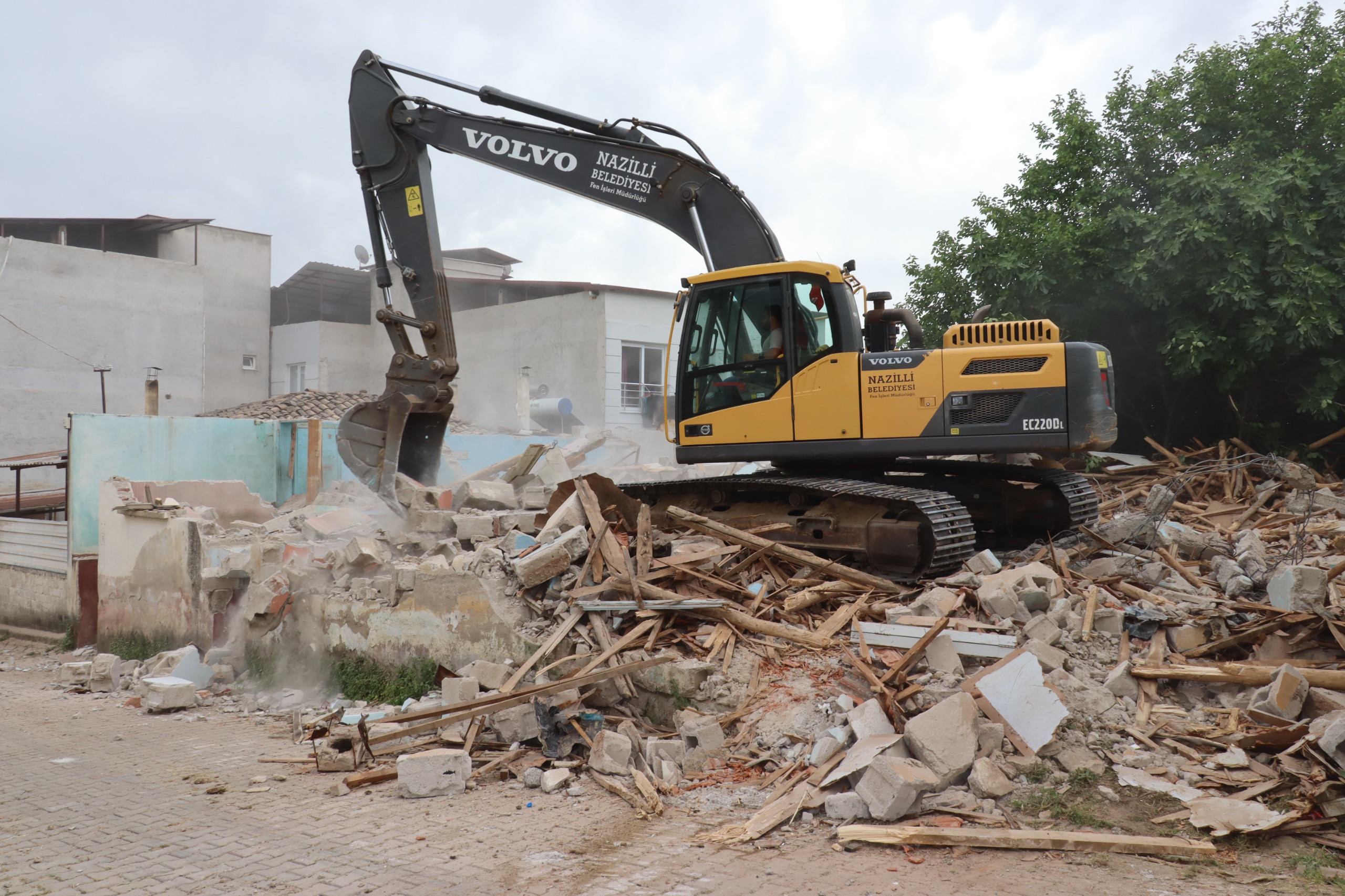 Nazilli Belediyesin ekipleri, İsabeyli Mahallesi’nde bulunan tescilli Kurtuluş Camii’nin koruma alanında kalan metruk binanın yıkımı için çalışma başlattı.