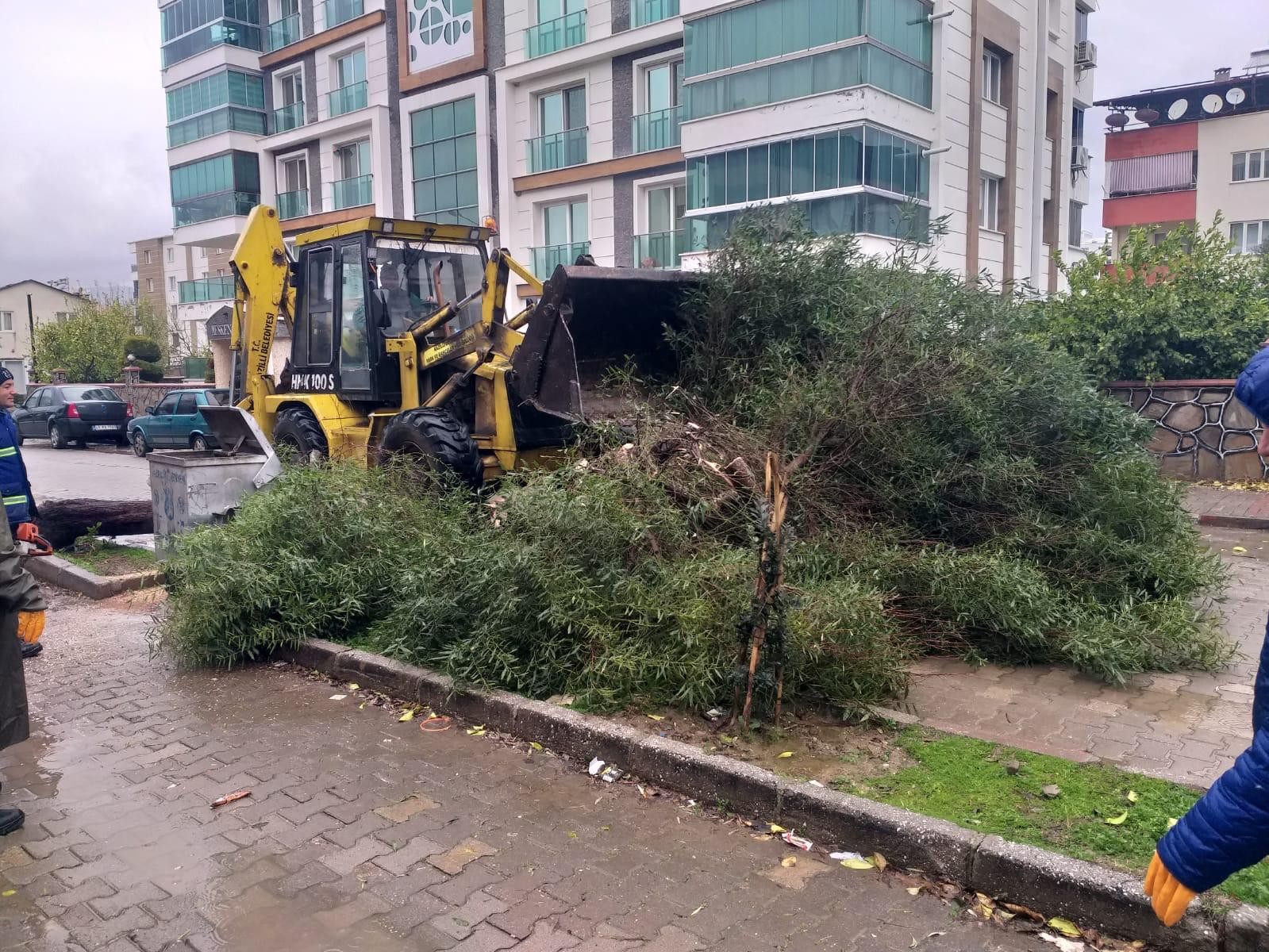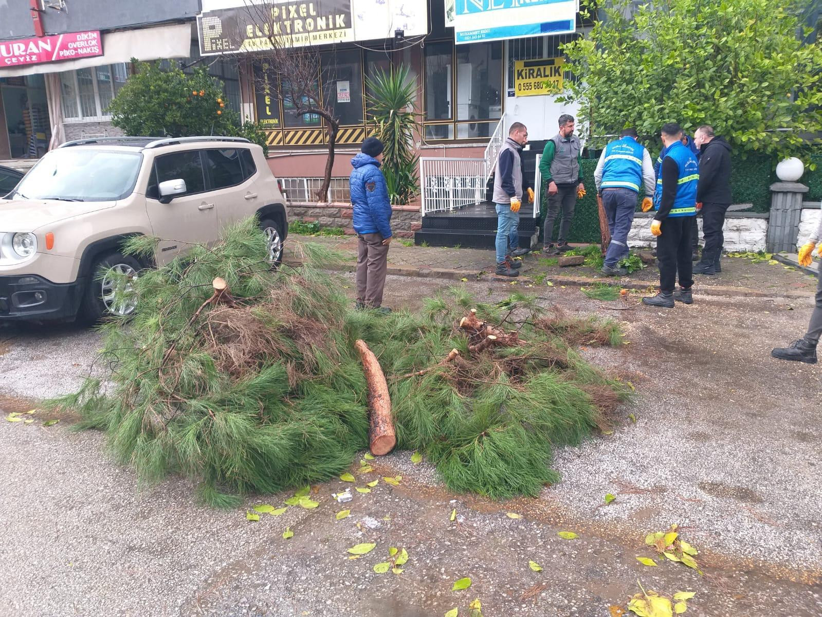 Yapılan kontroller sonucunda devrilen ve tehlike oluşturan ağaçlar kısa sürede kaldırılarak çevrede güvenlik sağlandı.