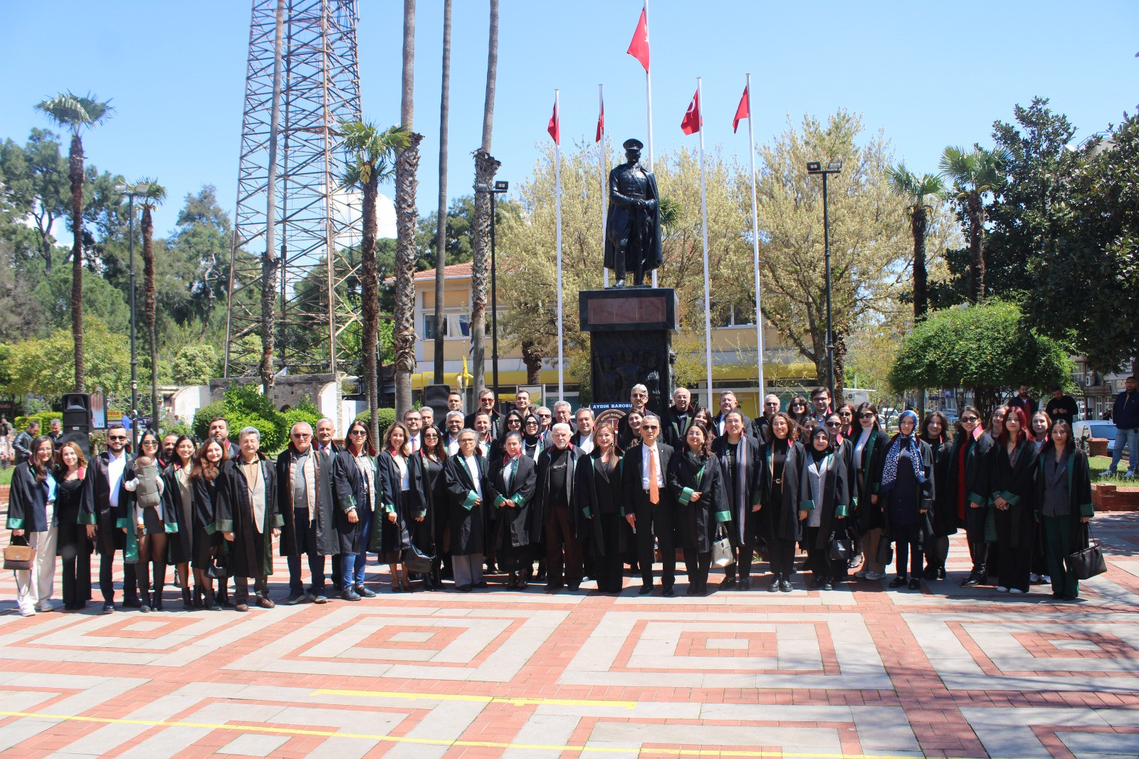 5 Nisan Avukatlar Günü dolayısıyla Nazilli’de görev yapan avukatlar, İstasyon Meydanı’ndaki Atatürk Anıtı önünde bir araya geldi