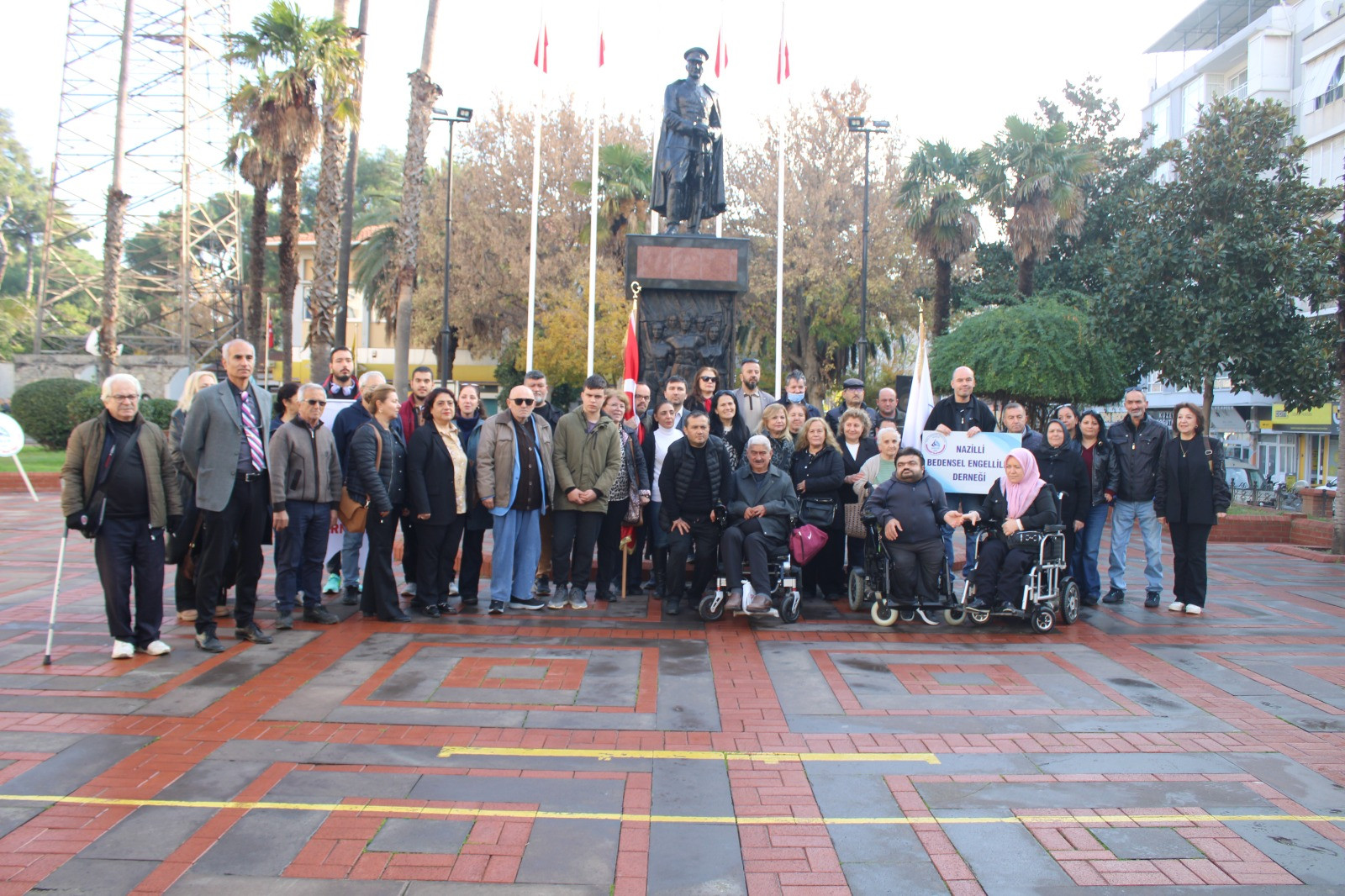 Nazilli’de 3 Aralık Dünya Engelliler Günü kapsamında düzenlenen çelenk sunma töreni, bu yıl alışılmışın dışında protokolsüz gerçekleştirildi
