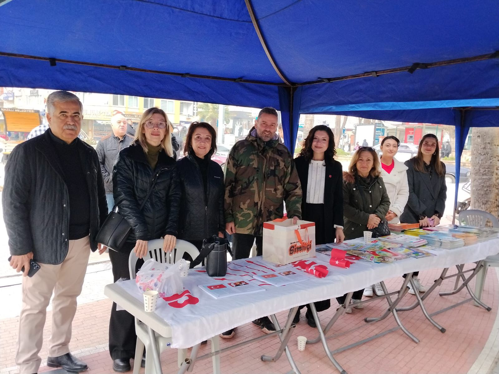 Nazilli Cumhuriyet Meydanında düzenlenen açıklamaya, CHP Nazilli İlçe Başkanı Av. Sema Aslıhan Ökmen ve ilçe yönetimi, Nazilli Belediye Başkanı Dr. Ertuğrul Tetik, Nazilli Belediye Başkan Yardımcısı Kadir Mutlu, CHP Belediye Meclis üyeleri, CHP Nazilli Kadın Kolları Başkanı Nilgün Aktaş, CHP Nazilli Gençlik Kolları Başkanı Mustafa Kemal Koç ve çok sayıda partili katıldı.