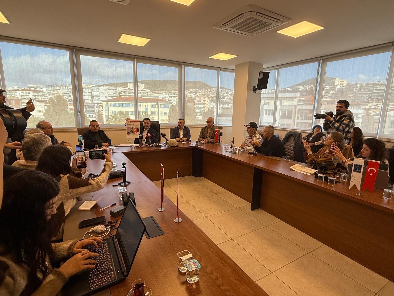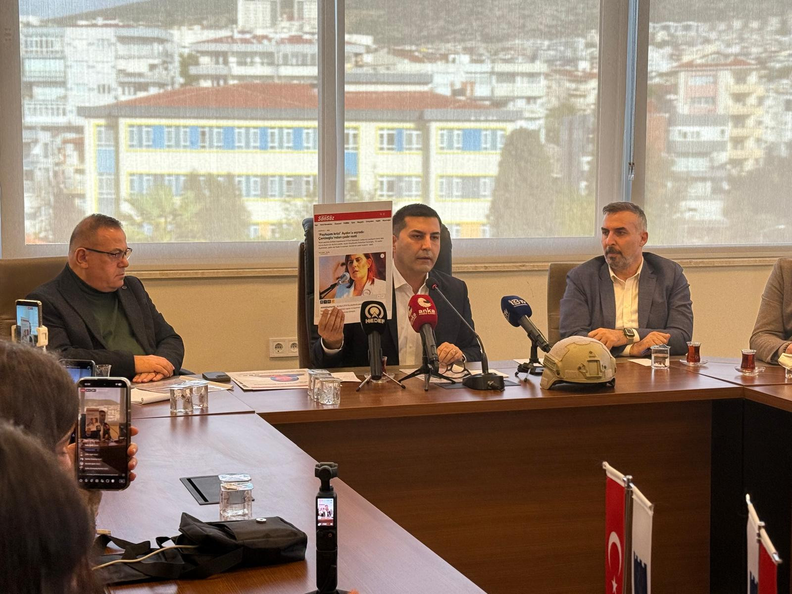 Kuşadası Belediye Başkanı Ömer Günel, Aydın Büyükşehir Belediyesi’nin Kuşadası Belediyesi’ne ait hizmet alanına yönelik dün akşam gerçekleştirdiği müdahalenin ardından hizmet binasında basın açıklaması düzenledi